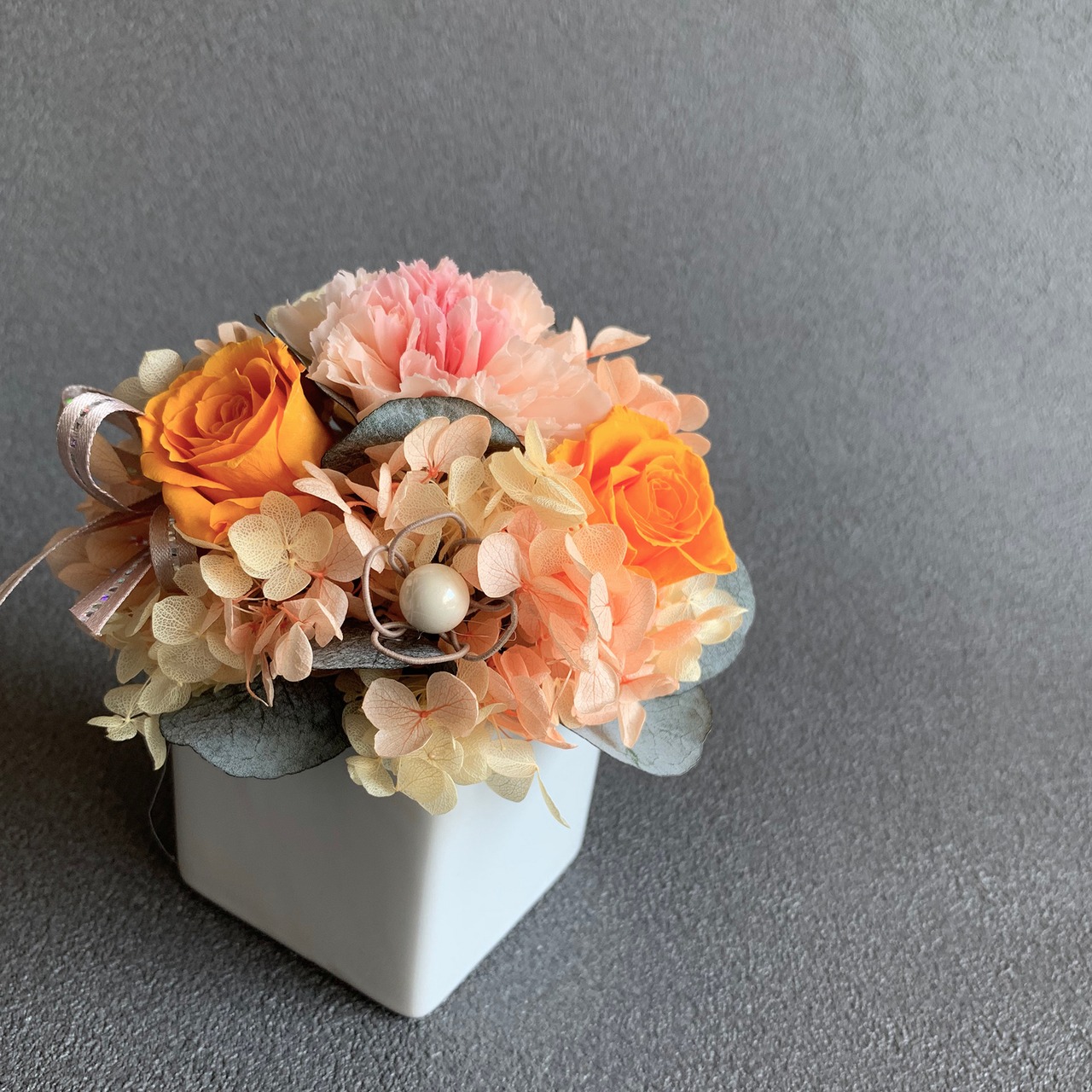 ※プリザーブドフラワーはとてもデリケートな素材の為、慎重に梱包いたしておりますが、万が一送中に素材の一部が落ちてしまったりかけてしまった場合には、何卒ご了承下さいますようお願い致します。