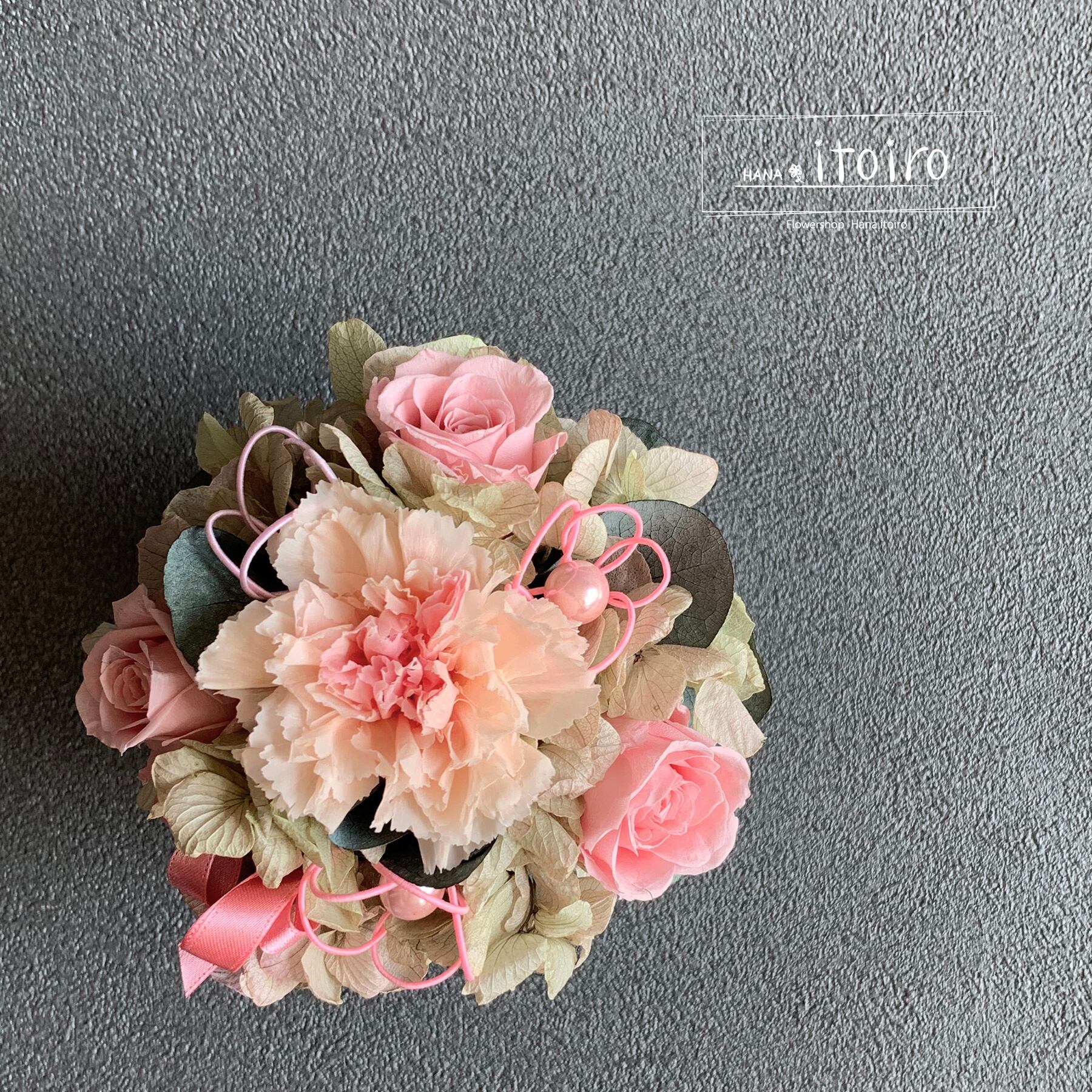 使用素材:プリザーブドフラワー カーネーション・ローズミニ