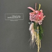プリザーブドフラワーとドライフラワーを使用し水引アートフラワー(水引作家のKyoko Mitsumata さんにご指導いただき作成しております。)を取り入れた小さなお正月飾りです。